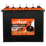 Livfast Maxximo Tubular Batteries are high-performance deep-cycle batteries designed for long backup time and superior durability. Built with advanced tubular plate technology, these batteries deliver reliable power for home inverters and solar systems, ensuring stable performance during frequent power outages.